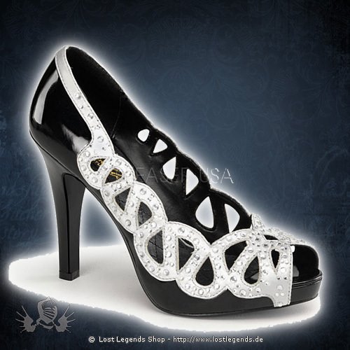 4 1/4″ High-Heel, Peep Toe Halbschuh (Pumps) mit Strass Cut-Out Trim in der Farbe Schwarz-Silber.