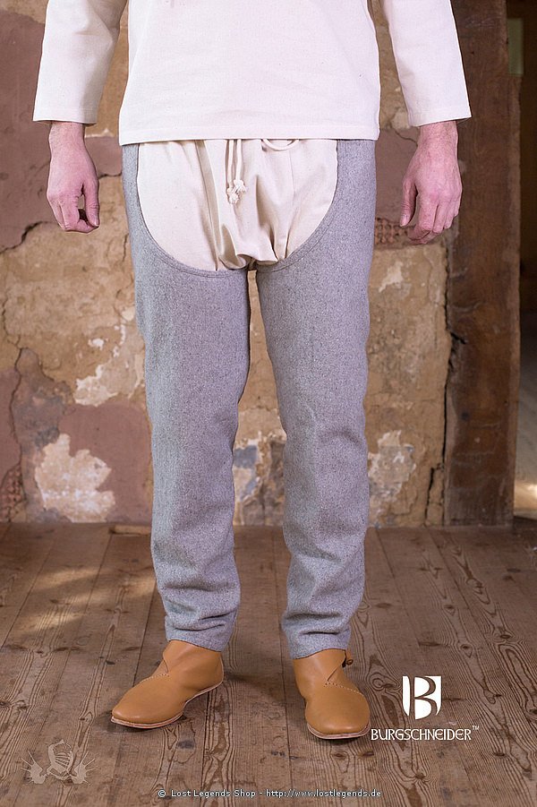 Passende Beinlinge aus Dickem Wollgemisch, passend zu unseren authentischen mittelalterlichen Bruchen. Die Beinlinge sind wärmender als die Variante aus Baumwolle und werden mit der Bruche über kleine Kordelns ans Bein geknüpft. Sie liegen eng um das Bein und sollen ähnlich wie eine Strumpfhose sitzen.