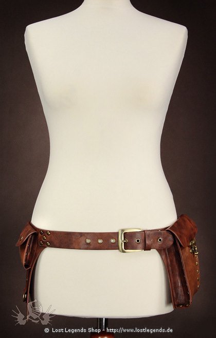 Belt is made of faux leather in two shades of brown.