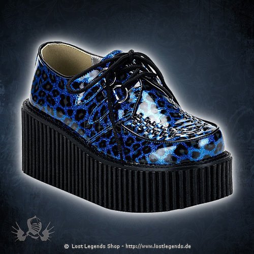 3″ Plateau Goth Punk Rockabilly Blue Cheetah Gltr Pat Creeper in der Farbe Blau Leopard.