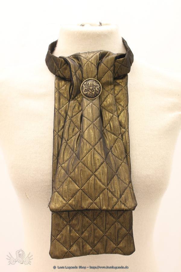 Mens elegant diamond quilted cravat made from stunning shimmering fabric. Neck tie fastens around the back with Velcro. Intricate antique brass Dragon button on front. Great for accessorising your Steampunk outfits.