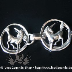 Silberschliesse die Einhörner darstelt als Verschluss für Ihre Kleidung.