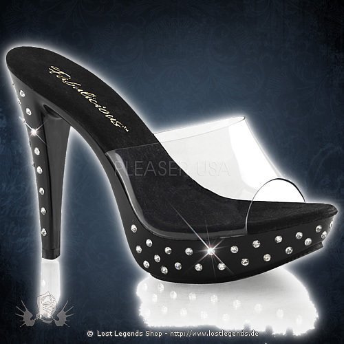 5″ High-Heel, 1″ Strass Studded Steil-Plateau in der Farbe Klar/Schwarz.