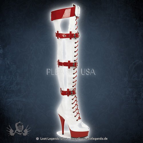 6″ Stiletto Plateau Overknee-Stiefel in der Farbe Weiss-Rot.