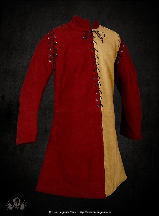 Dieser Gambeson besteht aus reiner Baumwolle und mit einem dezenten Stehkragen ausgestattet. Die Schnürärmel können abgenommen werden, womit sich das Erscheinungsbild im Handumdrehen verändern lässt. Die Schnürung auf der Vorderseite erleichtert das Anziehen, der rückwärtige Schlitz kommt der Bewegungsfreiheit zugute.