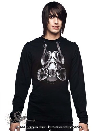 Dieser coole schwarze Longsleeve ist vorn mit einer Gasmaske bedruckt.