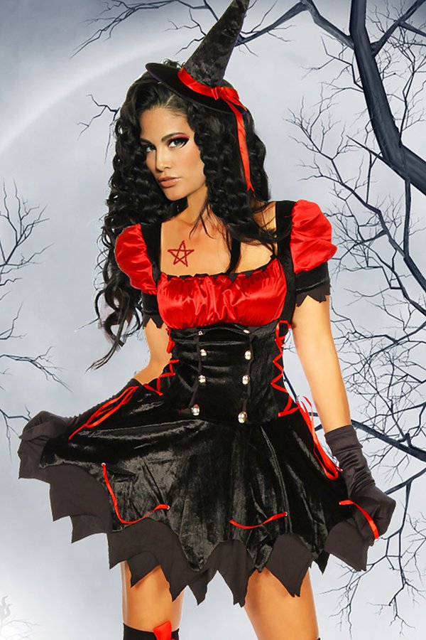 - tanz mit mir im Vollmond!- teuflisch schönes Hexen-Petticoatkleid- dekorative Knöpfe an der Vorderseite- ein Reißverschluss erleichtert das Ankleiden- inklusive passendem Hut aus Samt