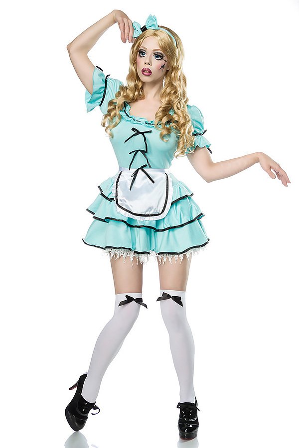 Perücke/Stockings: 100% Polyamid, Kleid/Schürze: 65% Baumwolle, 35% Polyester