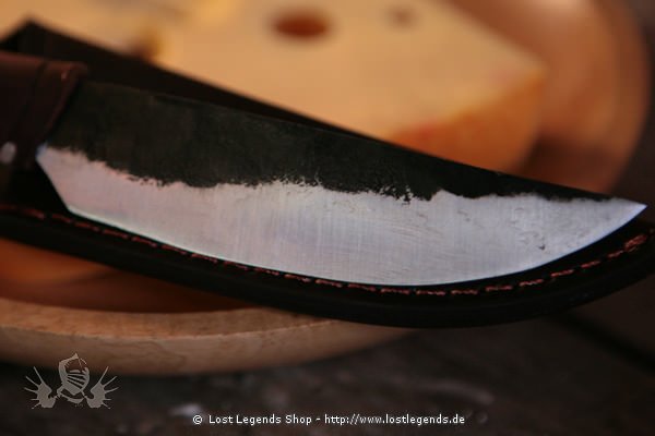 Das Messer wird mit Lederscheide und in Grundschärfe ausgeliefert. Der Stahl ist Rostfähig.