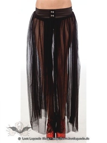 Dieser transparente lange Rock verbreitet klassische Gothic-Eleganz. Der wunderbar fallende Stoff und der breite Bund mit Metallhäkchen umschmeicheln Deine Figur.