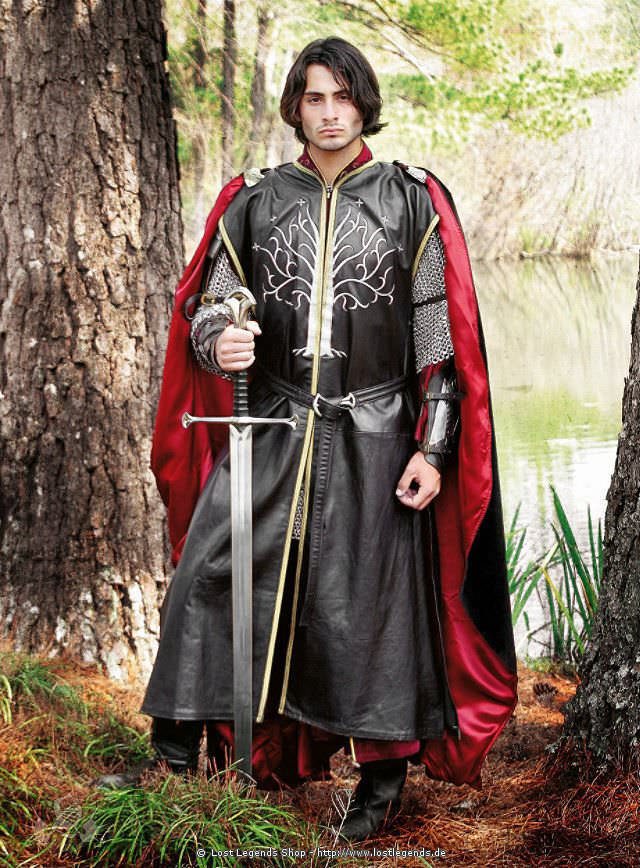Das Symbol eines fein verästelten Baumes prangt auf der Brust dieses Wappenrocks, und wurde aufwendig in die Oberfläche des braunschwarzen Leders eingearbeitet. Durch die glatte Oberfläche wirkt das Leder besonders edel, an den Säumen wurde der Wappenrock mit kleinen goldenen Borten verziert.