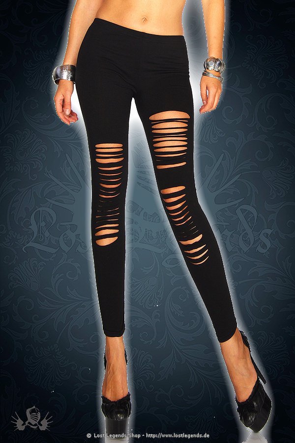 Frau zeigt Bein! Blickdichte Leggings mit vielen Schlitzen im vorderen Bereich. Ein idealer Begleiter für viele Gelegenheiten!