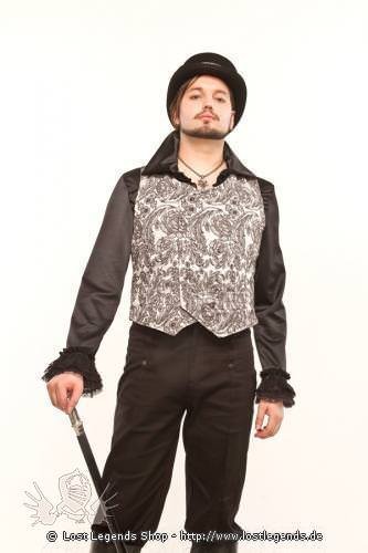 Mens elegant double breasted waistcoat, made from a beautiful silver floral brocade. Perfect for Steampunk and Alternative Weddings. Fastens down the front with press studs.