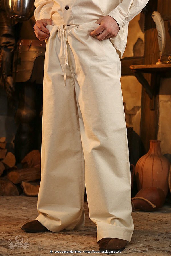 Vor allem durch seine Schlichtheit besticht das historische Beinkleid, denn dieses wird lediglich auf der Taille geschnürt, was eine individuelle Passform garantiert. Dieser einfache und reduzierte Schnitt ohne störende Taschen, Knöpfe oder Reißverschlüsse macht die Hose zu einer idealen Grundlage für Gewandungen aller Art.