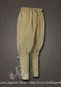 Mittelalterliche Hose mit Schnürung am Bund. Besonders variabel in der Weite und sehr angenehm zu tragen. Die eng geschnittenen Waden sorgen für den Pluder-Look an den Oberschenkeln und die Hose kann dadurch auch perfekt in Stiefeln getragen werden. Bitte bei Bestellung Maßdaten angeben.
