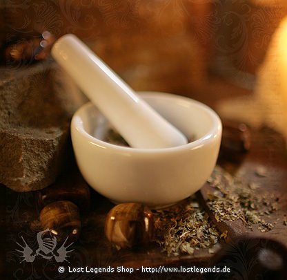 Kleiner Porzellanmörser mit Stöße zum Zerkleinern von Räucherwerk. Durchmesser ca 6cm.