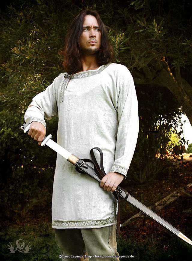 Diese Tunika ist aus reiner Baumwolle gefertigt, sie bietet mit ihren schlichten Borten an Ärmeln, Halsausschnitt und am unteren Saum auch etwas fürs Auge. Die praktische Schnürung aus Leder am Halsausschnitt rundet das Erscheinungsbild gelungen ab.