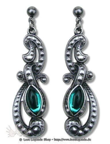 Ohrringe mit Stecker, gearbeitet aus Tombak (nickel- und bleifrei), antik silberfarben und mit hochwertigen Glassteinen verziert.