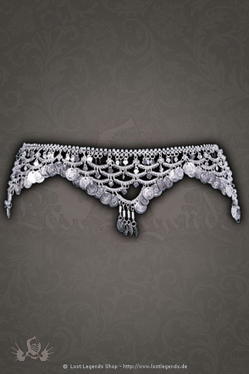 Toller Hüftgürtel im orientalischen Stil mit Ketten und klimpernden Münzchen. Ein echter Hingucker zu jedem Kleid oder Bluse. Beliebt auch bei Bauchtänzerinnen.