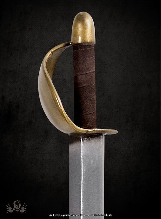 Dieser Piratensäbel hat einen mit echtem Leder umwickelte Hartgummi-Griff, er liegt angenehm und sicher in der Hand und verfügt über einen schützenden Griffkorb. Die gute Balance sorgt für eine hervorragende Kontrolle über den Piratensäbel. Der Kernstab ist aus leichtem, stabilem Fiberglas gefertigt, die Spitze innen besteht aus belastbarem Kevlar. Der Piratensäbel eignet sich für Seeräuber und Fantasy-Charaktere.