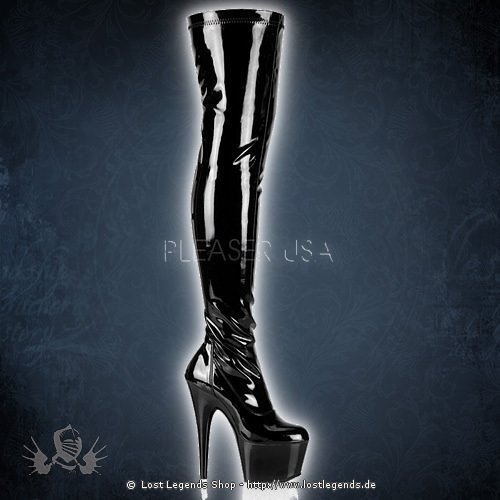 7″ Plain Stretch-Lack Plateau Overknee-Stiefel, mit seitlichem Reißverschluss in der Farbe Schwarz