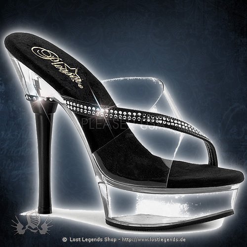 5 1/2″ Stiletto High-Heel Steil-Plateau mit Strass in der Farbe Klar-Schwarz.