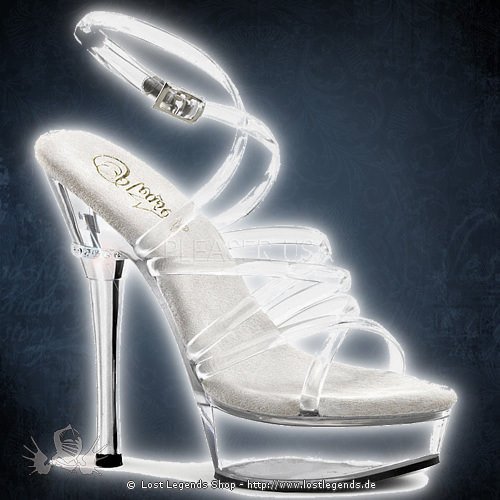 5 1/2″ High-Heel, 1 1/2″ Plateau Criss Cross Ankle Strap Sandal in der Farbe Klar.