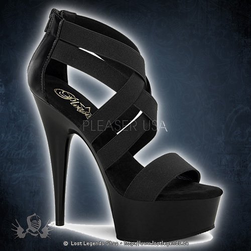 6″ High-Heel, 1 3/4″ Plateau Cross Close Back Sandal, Back mit Reißverschluss in der Farbe Schwarz Elasticated Band/Schwarz.