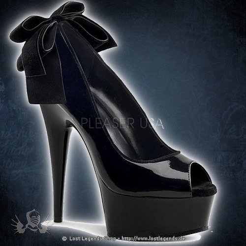 6″ High-Heel, 1 3/4″ Plateau Peep Toe Halbschuh (Pumps) in der Farbe Schwarz.