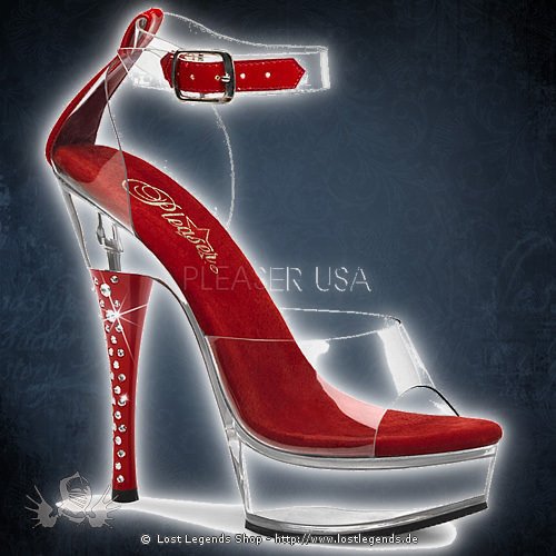 6″ Strassbesetzte High-Heel Sandalen in der Farbe Klar-Rot/Klar.