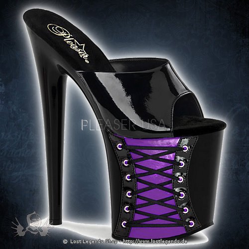 Stiletto Plateau Sandalen in der Farbe Schwarz-Lila.