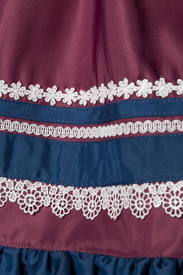 - ausgestelltes Rockteil mit Borten und Rüschen