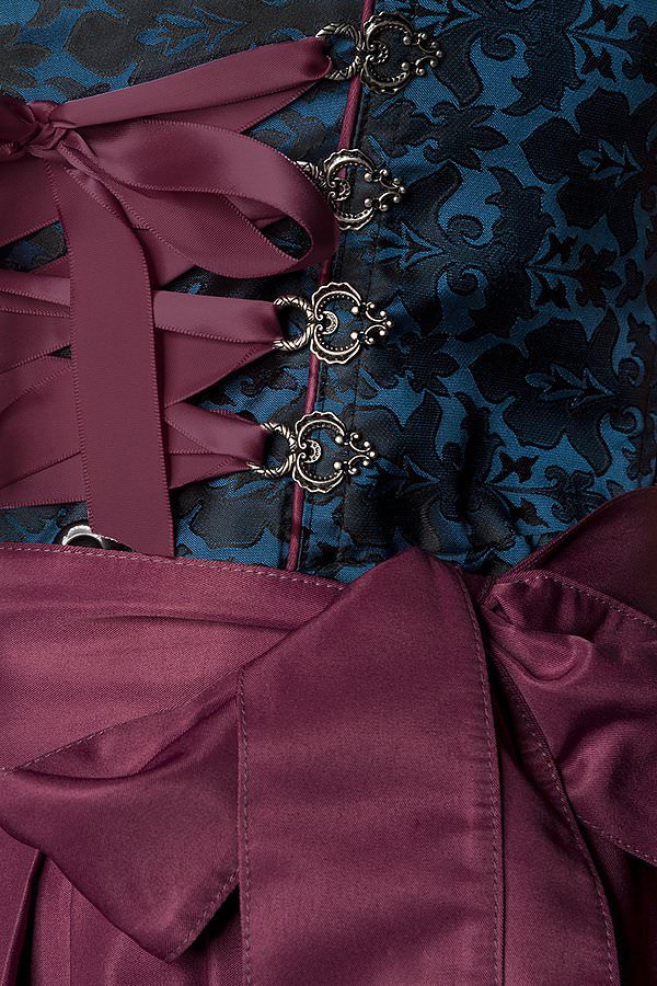 - farblich abgesetzte Paspelierung und Rüschen am Ausschnitt