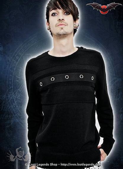 Ob im Alltag oder beim Diskobesuch - mit diesem Pullover triffst du garantiert ins Schwarze! Lochnieten auf der Vorderseite und ein Reißverschluss an der linken Schulter setzten nochmal einen besonderen Akzent. Ein absolutes Muss für deine schwarze Garderobe!