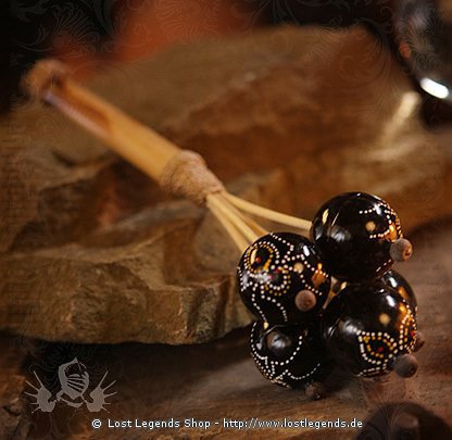 Rituelle Rassel mit Griff aus Bambus. Mit der Rassel werden z.B. traditionell vor einer Zeremonie böse Geister verscheucht und der Ritualplatz so gereinigt. Länge ca. 29cm.
