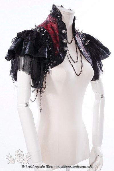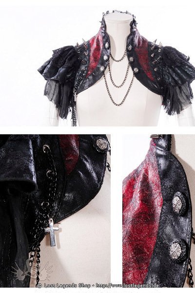 Dieser rockige Visual Kei Shrug ist die ideale Ergänzung für jedes Outfit und Anlass! Dekorative schwarze Ketten mit Kreuzanhängern schmücken dieses Lieblingsstück an Seiten und Halsbereich.