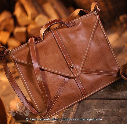 Römische Ledertasche/Pera mit Tragegriff und Schulterriemen.