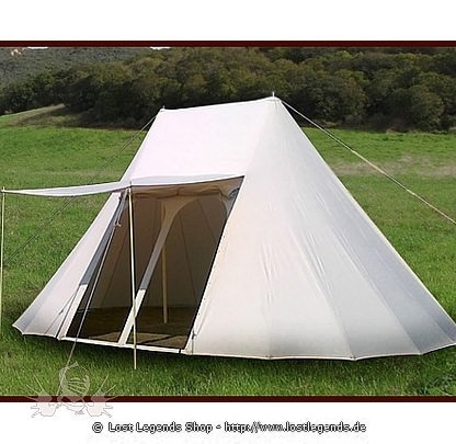 Dieses schöne und sehr authentische, zweimastige Sachsenzelt basiert auf historischen Vorlagen, z. B. Zeichnungen aus dem Utrechter Psalter aus den Anfängen des 9. Jahrhunderts (frühes Mittelalter). Es bietet geüngend Platz für 6-7 Personen inklusive Gepäck und Gerümpel. Die Mittelhöhe von 3,50 m bietet genug Höhe um sich im Stehen anzuziehen. Das große, fest angenähte Vordach (Baldachin) sorgt zum einen für ein schattiges Plätzchen bei Sonne und zum anderen für einen trockenen Fuß bei Regen - bei einer ausreichenden Eingangshöhe von 2,00 m. Dieses robuste und sehr authentische Sachsenzelt ist nicht nur wegen seines günstigen Preises, sondern auch wegen der hervorragenden Verarbeitung ein unentbehrlicher Ausrüstungsgegenstand für Heerlager, Mittelaltermarkt oder Larp.