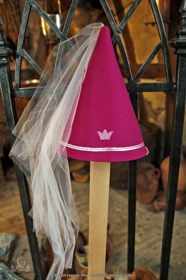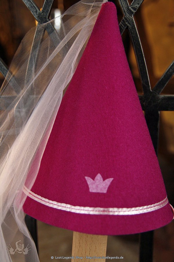 Pinker Spitzhut für kleine Prinzessinnen aus Wollfilz mit Satinband und rosa Tüll.