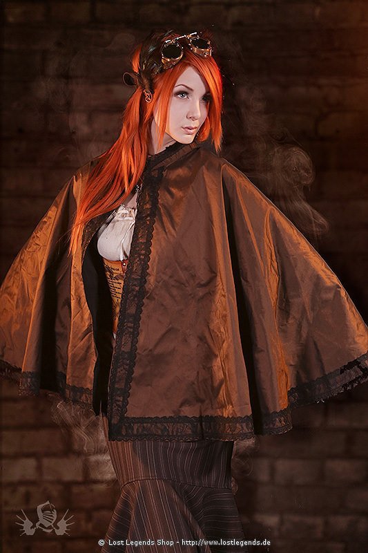 Mittellanger viktorianischer Schulterumhang / Pellerine aus schwerem, edel glänzendem Taft mit Spitzenverzierungen. Durch die simple Linienführung und klassische Form lässt das Cape sich zu jedem Outfit super tragen.