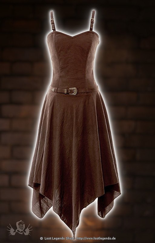 Steampunk Trägerkleid mit langem Zipfelrock, seitlich mit Reißverschluss geschlossen.