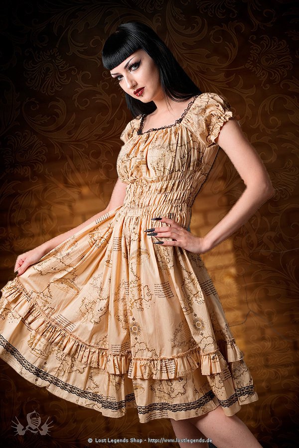 Our most comfortable dress, to wear for every occasion - especially summer days. You can wear it with waist cinchers or with petticoat to give it more puffy look. This dress features our special map print material, a hidden side zip and detachable belt.