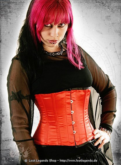 Edles Unterbrust-Korsett (Stilett) aus gefüttertem Satin mit Schnürung im Rücken, hochwertigen Stäbchen aus elastisch geflochtenem Edelstahl. Vorne wurde eine stabile Edelstahlleiste mit Hakenverschluss eingearbeitet.