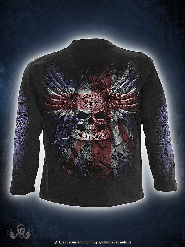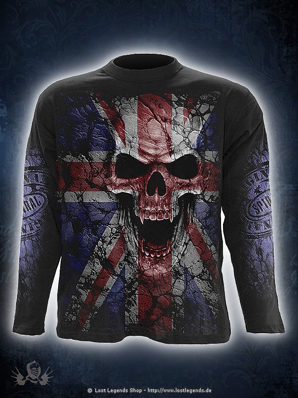 Spiral Direct, the Original. Made in England. This awesome rock like skull emblazoned with the flag of the UK is sure to give any lost soul some sense of belonging