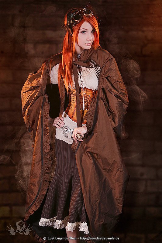 Langer, edler victorianischer Umhang aus schwerem Taft mit Rüschenverzierung. Passt sich durch die voluminöse Raffung an den Schultern sehr gut an die Körperform an in getragenem Zustand. Sehr angenehm zu tragen und eine super Ergänzung zu jedem Outfit.