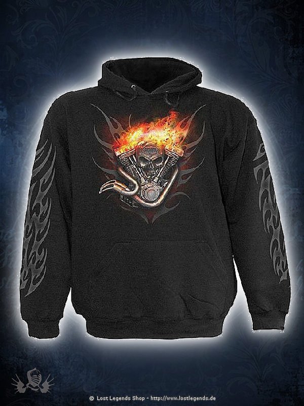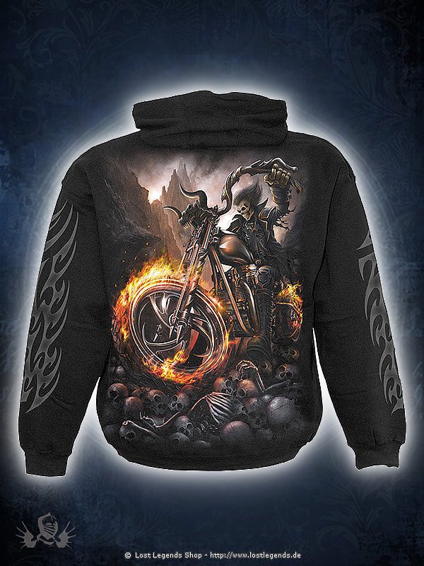 This demonic skeleton glides his custom bike, made from bones over the dead souls as he rides out of hell